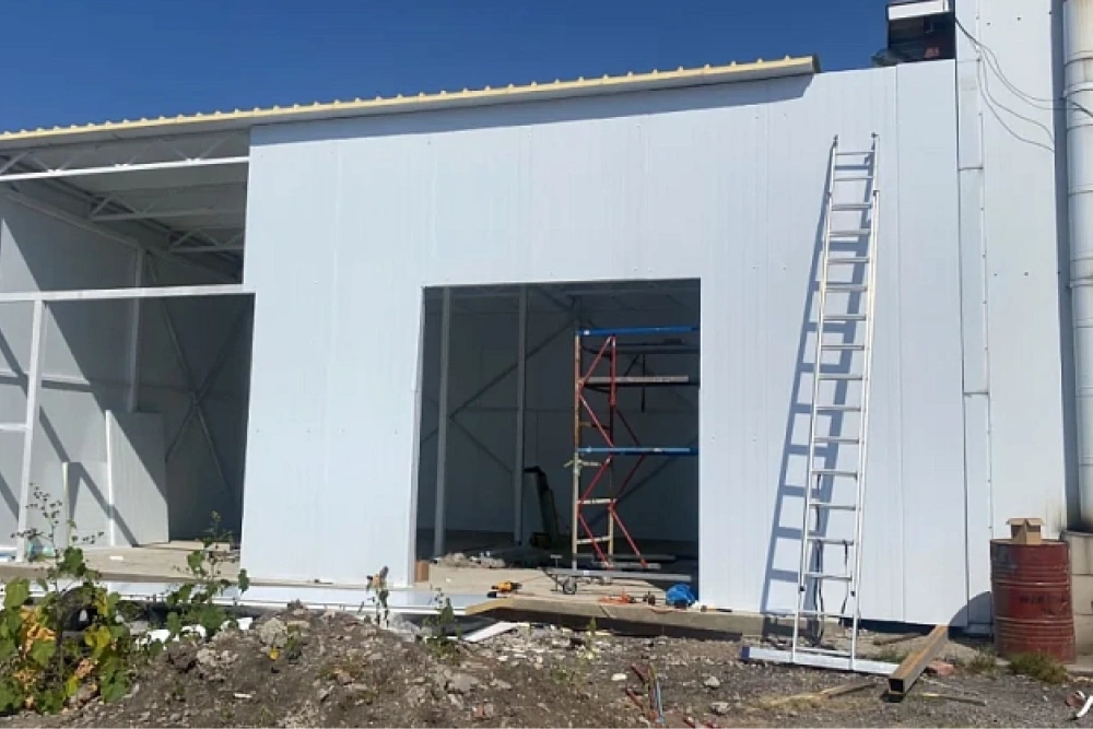 Проект включал изготовление, доставку и монтаж сэндвич-панелей PIR, толщиной 60 мм. Также был установлен металлокаркас и осуществлен монтаж входной группы с секционными воротами DoorHan. Все работы выполнены с опережением срока, с соблюдением технических требований и стандартов качества.