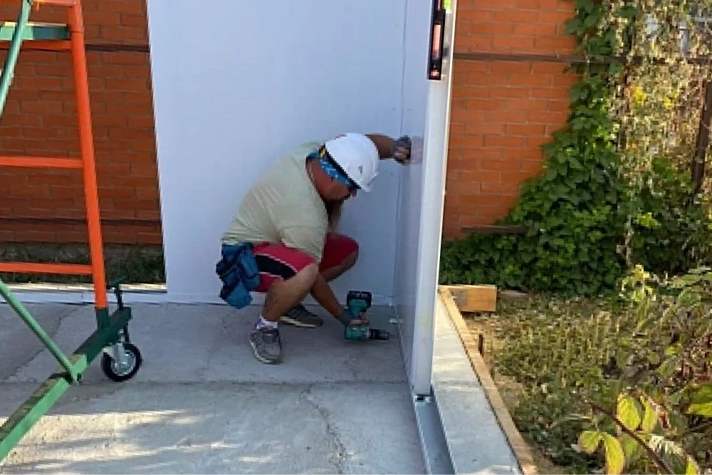 Производство, доставка и монтаж сэндвич-панелей PIR 80 мм. Выполнено бескаркасное строительство холодильной камеры и холодильных дверей. Экономия за счет отсутствия металлокаркаса и необходимости его установки составила 250 000 рублей.